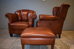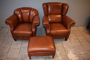 € 1395,00 2 rundleren fauteuils incl pouffe man en vrouw model heren model met traploos verstelbare rugleuning